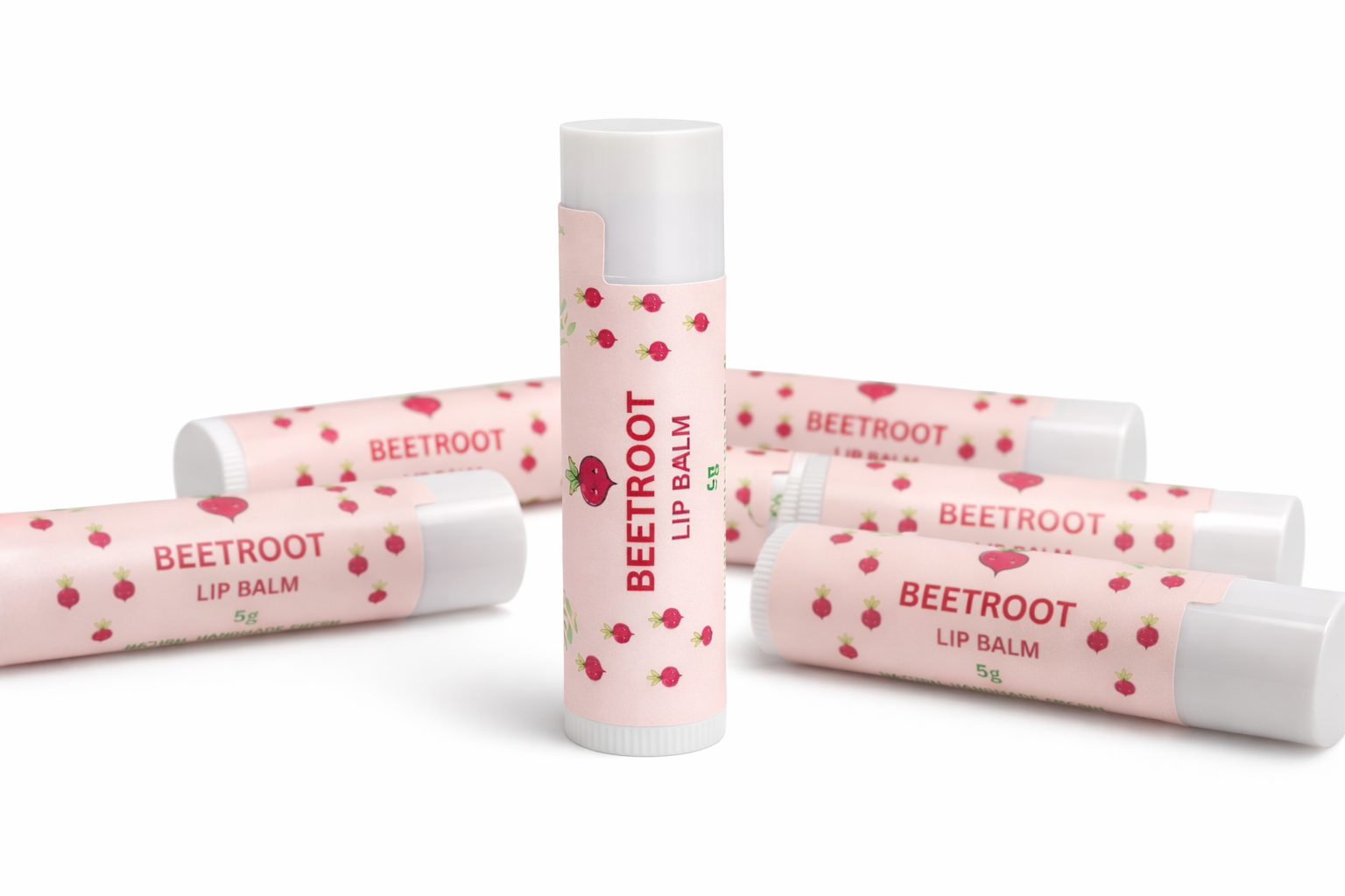 Nourish your lips with this artisanal beetroot lip balm, crafted from freshly dried and ground beetroot combined with a luxurious blend of almond oil, castor oil, and shea butter. Rose essential oil and vitamin E oil deliver antioxidant protection and natural radiance, while beeswax creates a protective barrier that locks in moisture. Perfect for daily lip care, this small-batch formula offers a subtle rosy tint and silky texture that soothes and conditions.